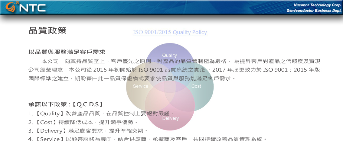 NTC production and sales consumable parts of semiconductor equipment and optoelectronic industries with many years experience, focus on the parts development and customer service, offer material applications, modify, customized, the main job at the cost of customer feedback and contributing to society.